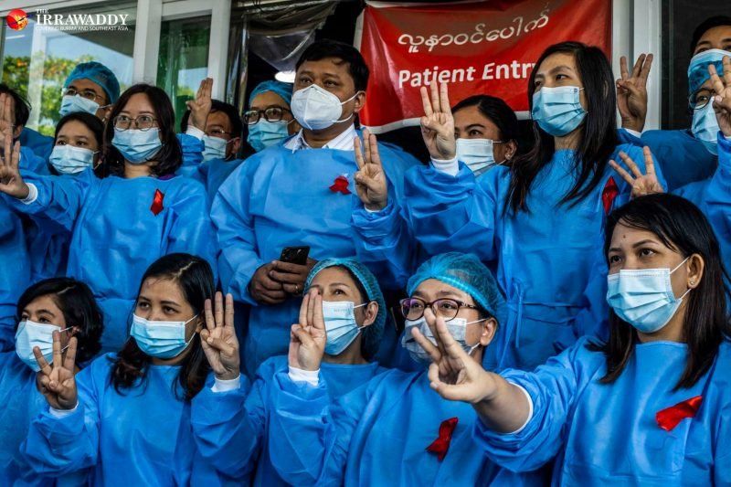 En Naipyidó, funcionarios de varios ministerios dejaron temporalmente de trabajar en la capital y marcharon portando una cinta roja, color de la LND. La víspera, abogados y médicos participaron en las protestas, mientras habitantes de Rangún daban bocinazos y golpeaban cacerolas por tercera noche consecutiva para "expulsar a los demonios". Los generales, sin embargo, continuaron deteniendo a personas, pese a las condenas internacionales.