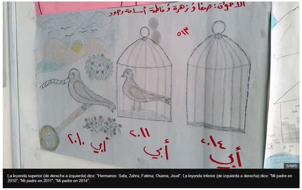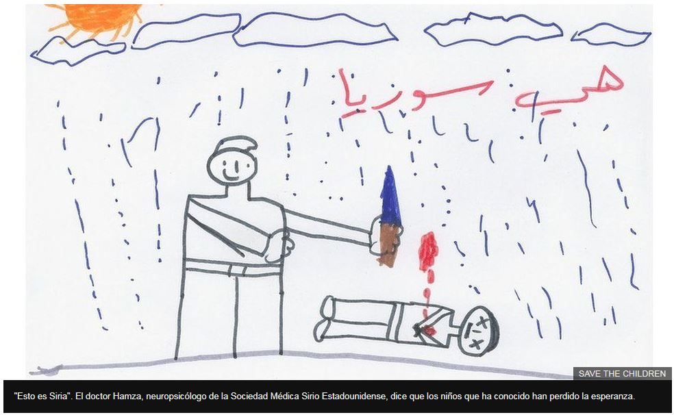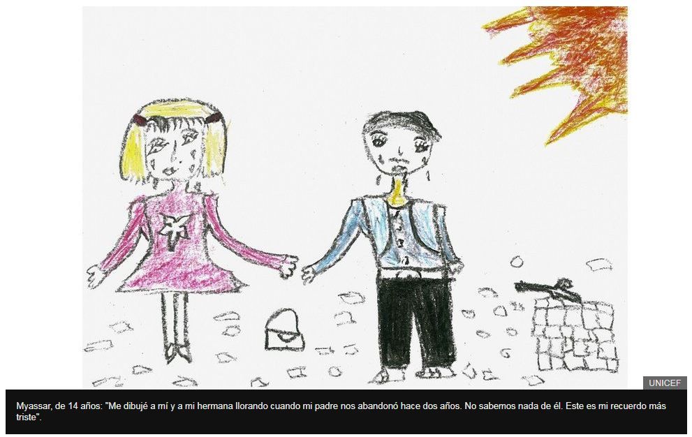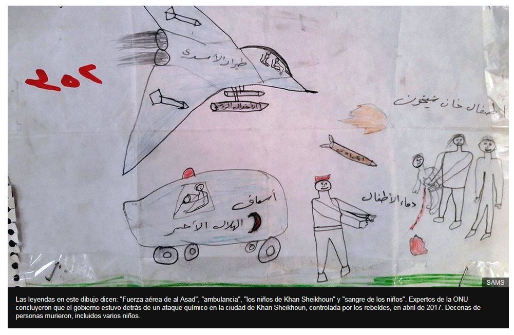 Esta y otras organizaciones de ayuda humanitaria han recolectado dibujos hechos por niños de hasta 14 años que muestran cómo ven la guerra. Las imágenes fueron suministradas por la Sociedad Médica Sirio Americana, la organización Save the Children y Unicef. Algunos nombres de los autores fueron omitidos para proteger sus identidades.