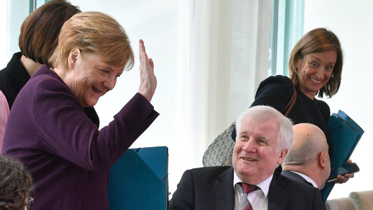 Cuando Merkel extendió la mano para saludar a Horst Seehofer en una reunión sobre migración en Berlín, él sonrió y se guardó ambas manos para sí mismo. Ambos se rieron y la canciller levantó la mano antes de sentarse.