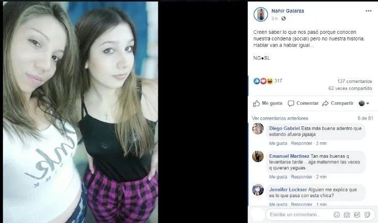 Luego, aseguró en diálogo con Elonce.com que sus abogados defensores no estaban al tanto de los posteos que realizaron en las redes sociales. Respecto de las críticas que recibieron a partir de las publicaciones sentenció: “Es fácil hablar y decir cosas sobre como vestimos o como tenemos el pelo, en vez de pensar lo que realmente nos pasó”.