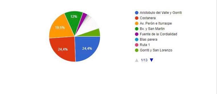Avenida Perón e Iturraspe en tercer lugar con el 19,5%, Bv Pellegrini y San Martín en cuarto lugar con el 12,1%