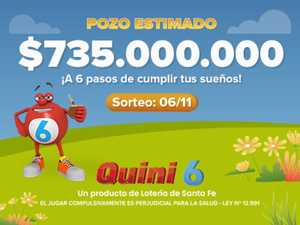 El Quini 6 puso en juego este domingo 6 de noviembre un pozo estimado de en 735 millones de pesos, entre sus diferentes modalidades. Seguí en vivo el sorteo 3008 en este link.