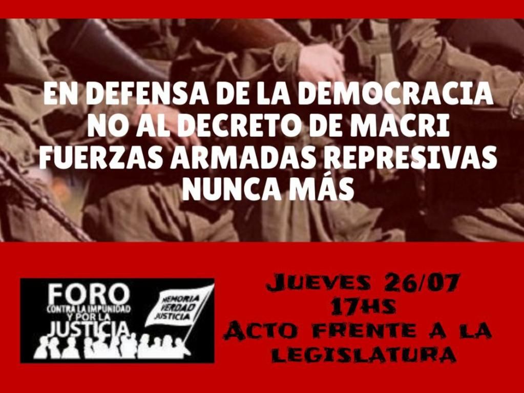 – No al decreto de Macri sobre las FFAA