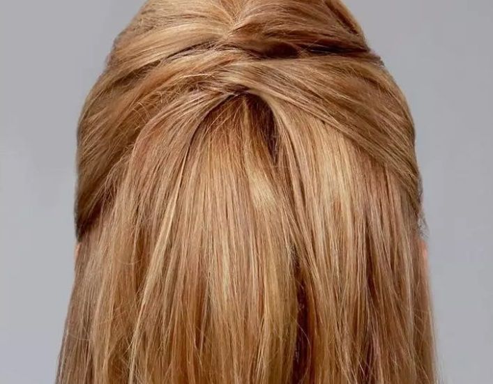 Se verá complicado pero no tiene nada de ciencia. Lo único que tienes que hacer es dividir tu cabello en dos secciones, y con la de arriba hacer un pequeño giro que asegurarás con un pasador. De ahí sólo es cruzar mechones de derecha a izquierda y fijar. Sí, así de rápido.