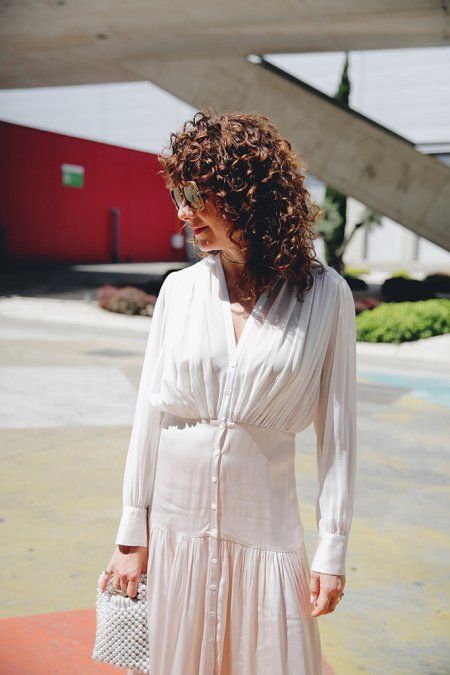 En este caso, jugamos de nuevo al trampantojo. La idea es dejar dos mechones a modo de capas más cortas que el resto de la melena, para que envuelvan al rostro con sus formas puramente verticales. No hay mejor estrategia.