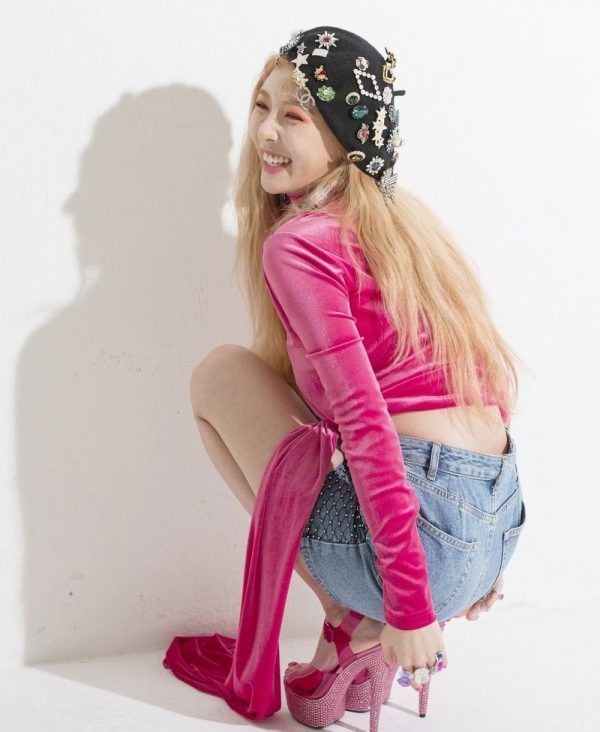 Una chaqueta de polipiel, con mezclilla y bordado. Algo digno de admirarse del k-pop es la revoltura de telas y texturas que hacen de sus outfits algo súper original.
