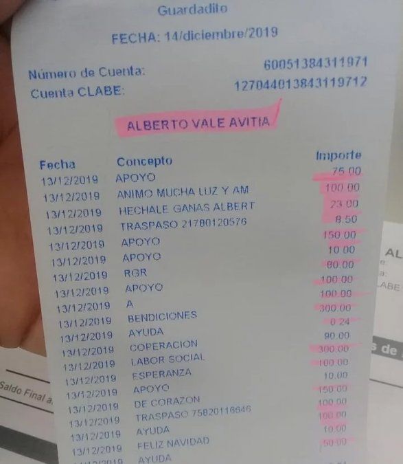 Horas más tarde, agregó un nuevo mensaje: "Actualización del caso de don Beto. Gente bonita, el señor Alberto acaba de venir y le checamos su cuenta. La cara llena de felicidad que puso al ver y sentir todo el amor que está recibiendo no tiene precio. Restauran la idea de que aún existe gente buena y solidaria. Dios me los bendiga a todos. Vamos por buen camino para solucionar su problema.