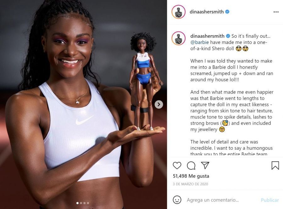 Dina Asher-Smith, también ha participado en campañas de moda y belleza para marcas de lujo como Bulgari, Valentino, e incluso han diseñado una Barbie inspirada en ella.
