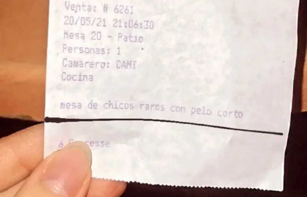 Son muchos los locales que hacen uso de poco ortodoxas descripciones para identificar con facilidad a los clientes en lugar de depender del olvidable número de mesa. En esta ocasión, un bar incluyó la extraña descripción de la mesa que atendían, a la que se refirieron como "mesa de chicos raros con pelo corto".