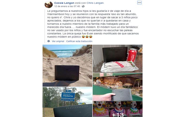 Así fue que compartieron fotos del módem de Internet “disfrutando” de las vacaciones con ellos: se lo ve en la playa, haciendo pic nic y jugando en un carnaval. Enseguida las fotos se viralizaron y fueron cientos los padres que se sintieron identificados con su historia.