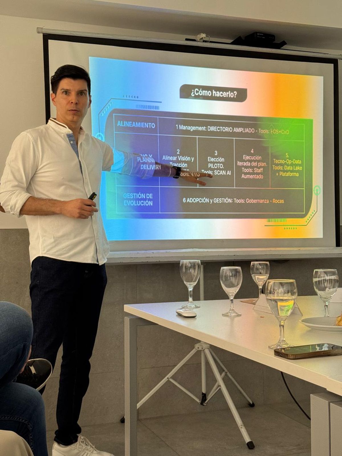 Posteriormente, Fabio Farchetto, invitado desde Córdoba, brindó una charla inspiradora sobre el impacto de la inteligencia artificial en el ámbito empresarial, abriendo una valiosa discusión sobre las posibilidades de transformación tecnológica para los negocios de los asistentes.