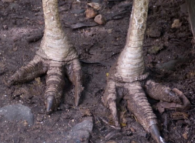 Sin embargo, lo que los convierte en un ave realmente particular son sus pies, que pueden llegar a medir 23 centímetros de largo. En el dedo interior de éstos cuentan con una gran uña afilada.