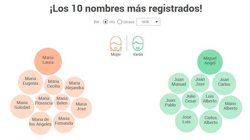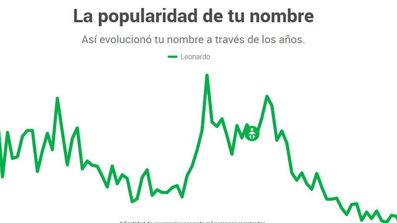 Después uno puede obtener cuantas personas nacieron ese año con el mismo nombre, cual fue el año de mayor popularidad y cual el de menor. Además muestra los nombres más populares de acuerdo al año seleccionado y permite ver los nombres más curiosos, según informa eldiariodelarepublica.