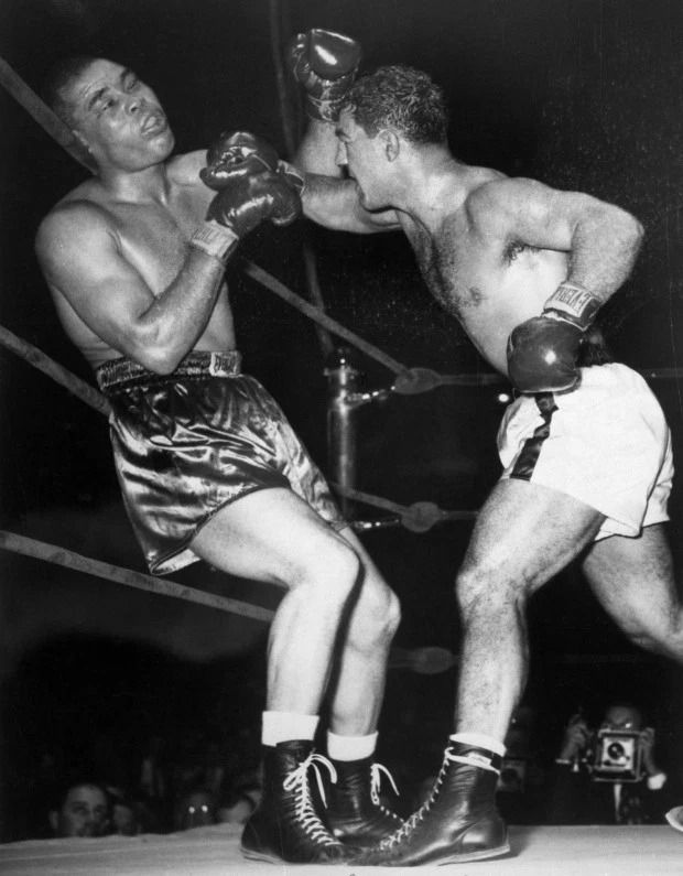 El 26 de octubre de 1951, Marciano noqueó al gran Joe Louis, quien, a los 37 años, había vuelto a los rings, y era su ídolo de la infancia.