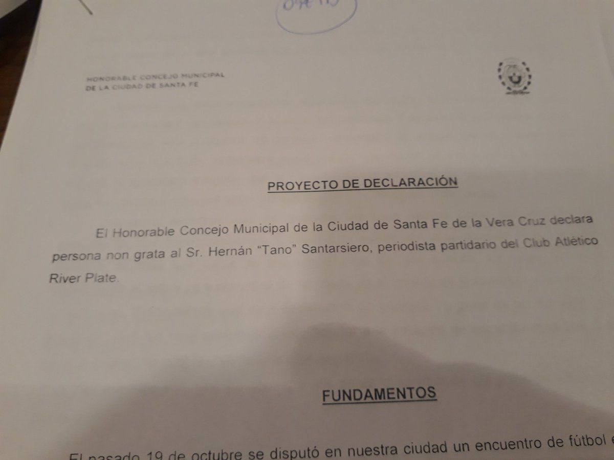 El proyecto, votado en forma unánime, fue impulsado por la concejala Alejandra Obeid que en diálogo con Aire de Santa Fe dijo que “esto es por sus repudiables declaraciones hacia los simpatizantes de Colón y hacia los santafesinos”.