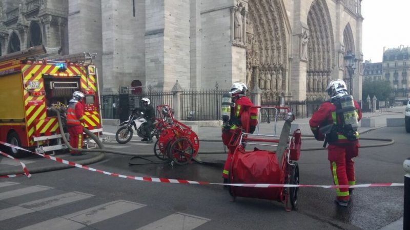 Equipos de emergencias trabajan a los pies de Notre-Dame. Foto: EFE