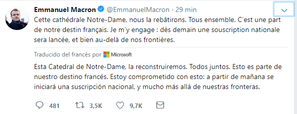 — Emmanuel Macron (@EmmanuelMacron) April 15, 2019