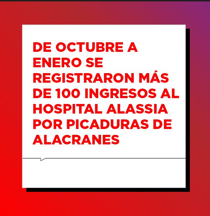 Desde fines de octubre -cuando comenzaron los primeros calores de la temporada- hasta principios de enero, se registraron más de un centenar de ingresos al Hospital de Niños por picadura de alacranes. Afortunadamente, la mayoría no revistió gravedad.