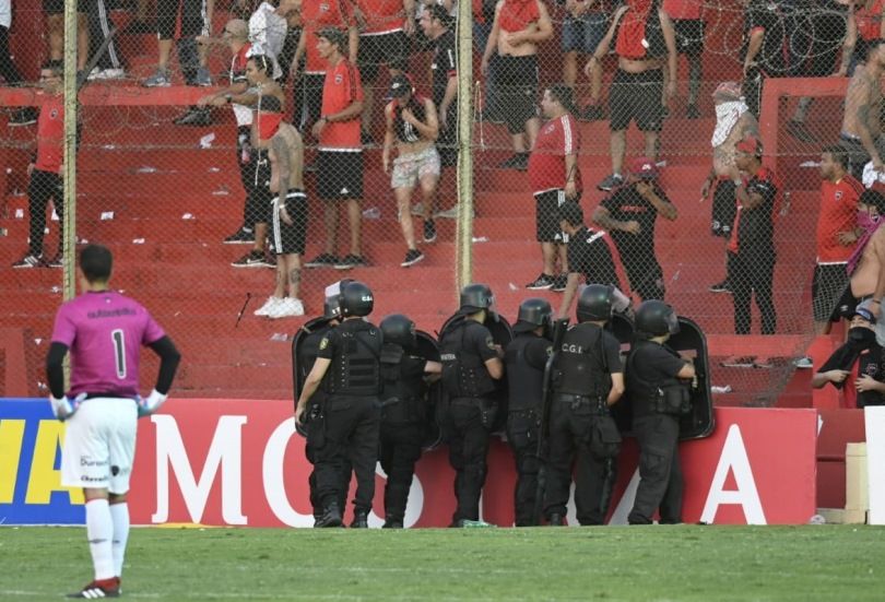 Allí, tras la derrota de “La Lepra” por 2 a 1, hinchas del conjunto rosarino agredieron a cinco policías que se hallaban en la cancha del Club Atlético Unión brindando seguridad en el cotejo deportivo.