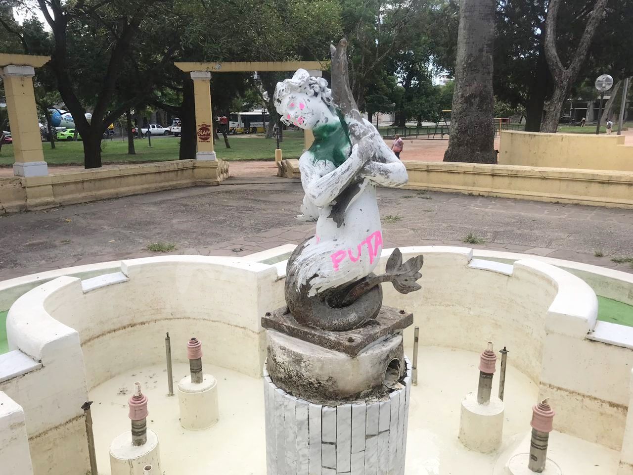 Dos jóvenes santafesinas fueron detenidas en la plaza Constituyentes mientras realizaban pintadas y graffitis en las instalaciones de la misma. Con un aerosol rosa, dejaron diversas leyendas y dibujos en la fuente y en un pilar.