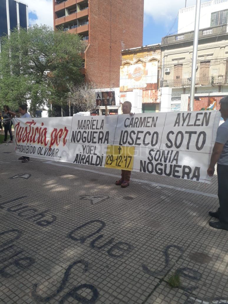 Familiares, amigos y vecinos de las cinco personas asesinadas el 29 de diciembre de 2017, conocida como la Masacre de Bº Santa Lucía, se manifestaron en Plaza del soldado. Reclaman justicia, asistencia estatal y respuestas del gobierno provincial.