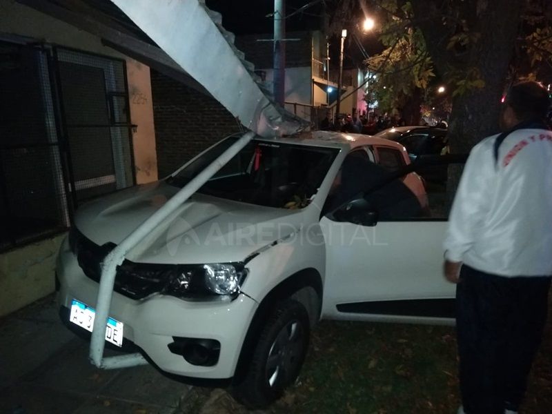 El Renault Kwid de Ezequiel quedó debajo de un kiosco.