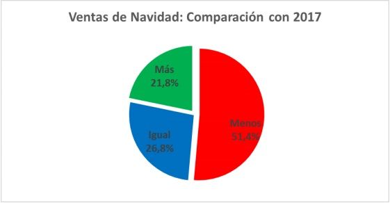 En síntesis, el 2018 ha sido un año malo para los comerciantes. “Las ventas interanuales han tenido caídas constantes todos los meses del año. Seguramente diciembre, a pesar de la Navidad, cierre a la baja. Sin embargo, cabe resaltar que estamos comparando 2018 con 2017 que tampoco fue un año bueno, lo que resulta una especie de escalera descendente”, sostuvo Arese.