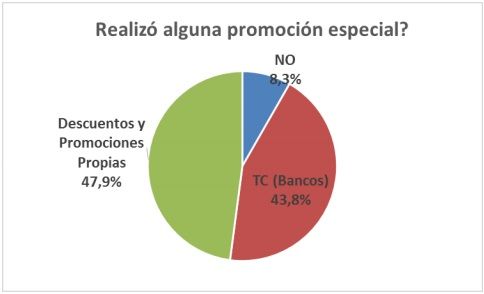 Ahora bien, el comercio local logra llegar a estas cifras aceptables, como consecuencia de haber realizado ingentes esfuerzos en materia de promociones, ofertas, y descuentos, previendo que estas acciones eran indispensables para motorizar las ventas y despertar el interés del consumidor. En tal sentido, hubo una política agresiva de ofertas, descuentos de hasta 30/40%, promociones 2×1, descuentos en la segunda unidad, etc. También desde los ámbitos gubernamentales, se trató de dar un impulso al sector, tanto desde la Municipalidad (“Ofertón” de días pasados), como desde el Gobierno de la Provincia (sorteos en Centros Comerciales a Cielo Abierto).