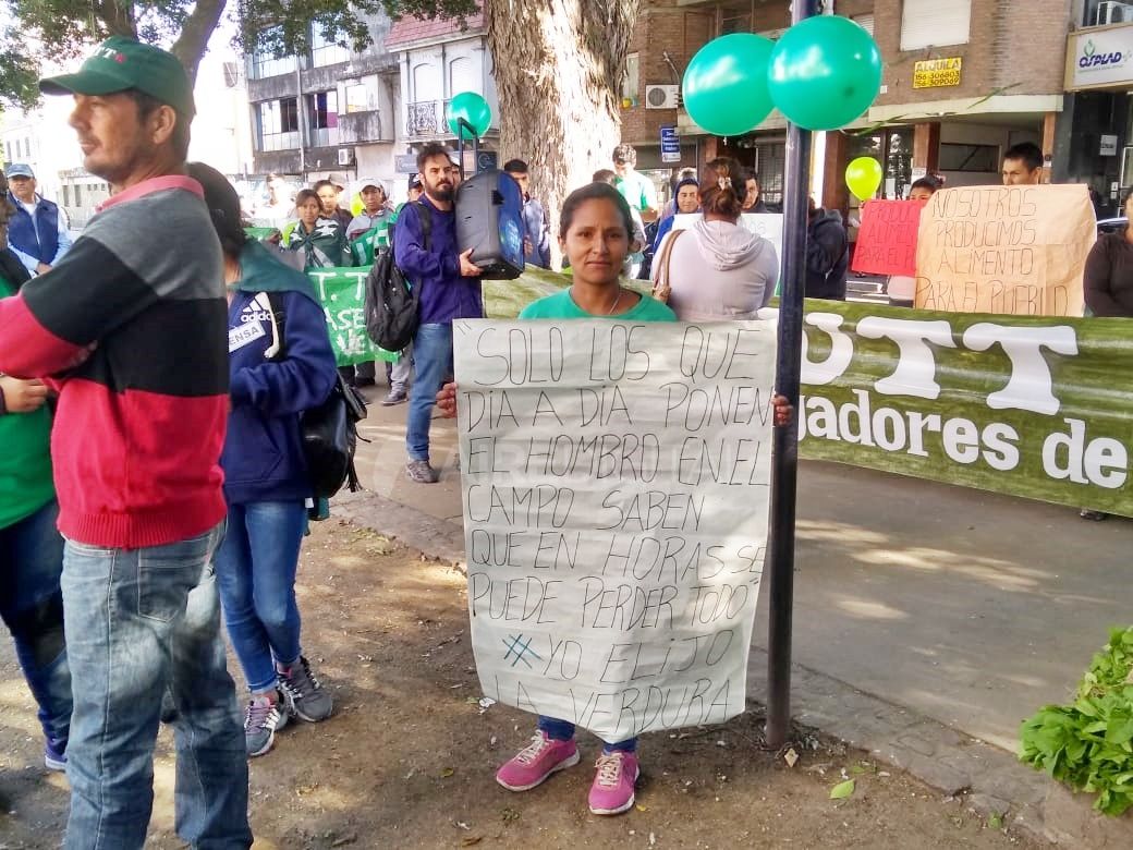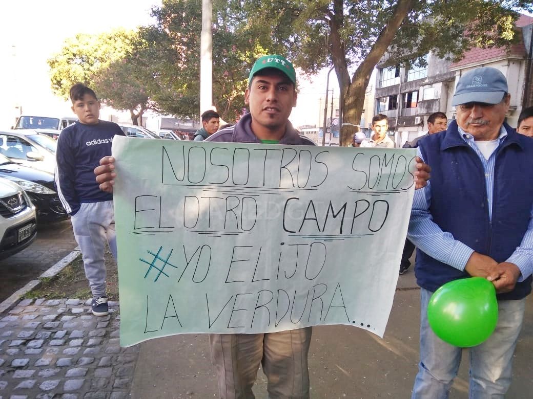 Frente al palacio municipal, los manifestantes instalaron sus cajones de verdura, sus banderas y carteles. Mientras obsequiaban 150 docenas de paquetes de rúcula, le explicaban al público las dificultades que tienen para seguir con su trabajo. Los insumos dolarizados, las inclemencias climáticas y una cadena de comercialización que paga monedas a los productores y luego multiplica por 10 o 15 veces el precio para el consumidor final son algunos de los obstáculos con los que se enfrentan a diario.