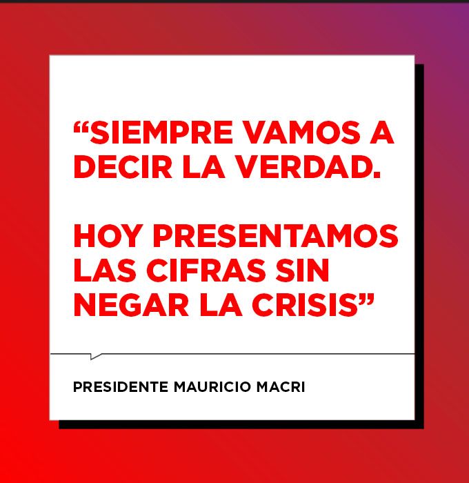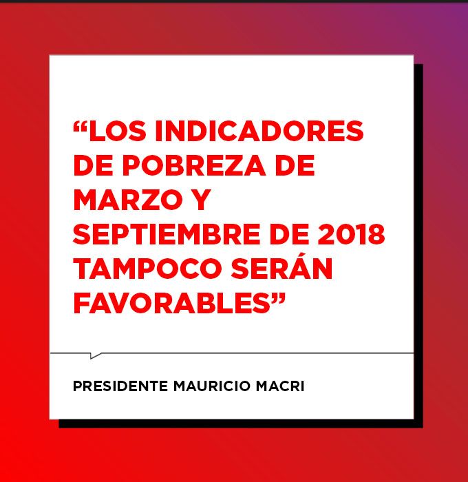 “No es una noticia fácil para comunicar, pero no creemos que el país pueda progresar escondiendo los datos, como se hizo durante tanto tiempo. La pobreza no desaparece porque se deje de medirla“, sostuvo Macri en clara referencia al gobierno kirchnerista, y buscó marcar una diferencia: “Siempre vamos a decir la verdad y presentar las cifras como son. Ahora las presentamos sin negar la crisis, y sabemos que en el futuro vamos a poder contarles que el país sale adelante”, expresó.