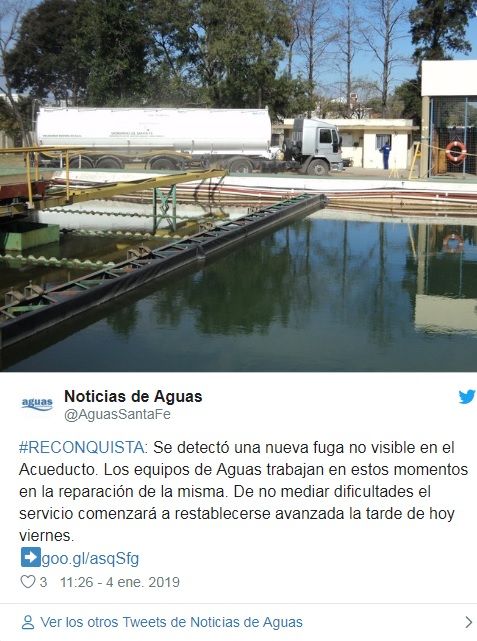 Leer más ►Reconquista está sin agua potable hace 24 horas