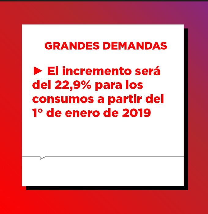 En el caso de los consumos domiciliarios, el incremento será de 20% en enero y 9,7% en marzo, llegando al 30%.