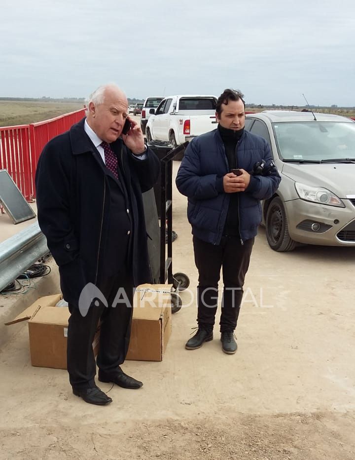 El gobernador arribó a la localidad en helicóptero y desde allí se trasladó al puente.