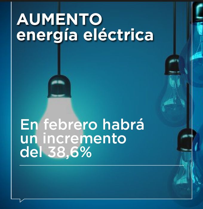 Los aumentos serán en febrero del 21% para los grandes usuarios y 26% para las pequeñas demandas. A partir de mayo habrá un 5% de aumento y finalmente en agosto otro 5% para la energía mayorista.