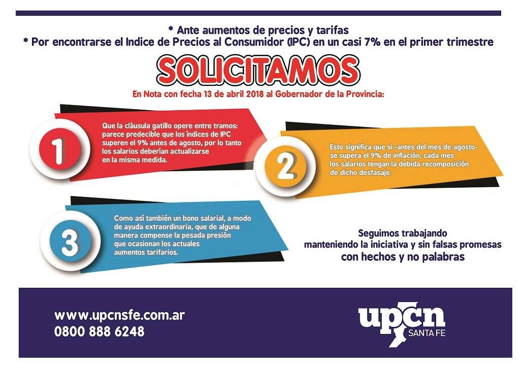 UPCN Santa Fe, el único gremio masivo que hasta el momento ha aceptado y firmado la política salarial provincial, remitió una nota al gobernador realizando algunas observaciones y pidiendo medidas que protejan los ingresos de los trabajadores.
