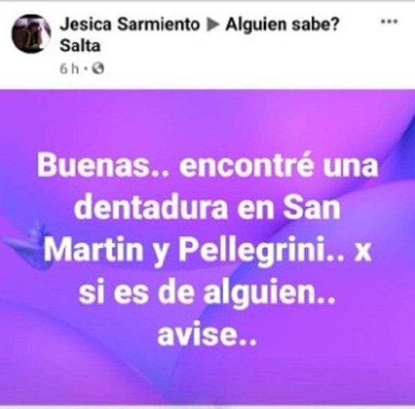 El hallazgo se produjo a fines de mayo y la publicación solidaria se volvió viral rápidamente en Facebook. Una joven encontró una dentadura postiza en pleno centro y está dispuesta a devolvérsela a su respectivo dueño.