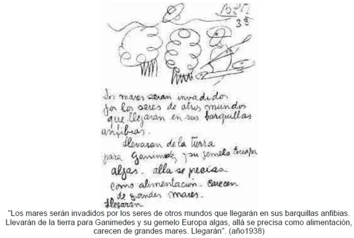 En 1939 escribió: "Llegarán a la Tierra nuevamente seres extraterrestres.... Llegarán en naves espaciales diferentes, de diferentes planetas y habitarán los cráteres montañosos de los Andes y del sur patagónico. Ellos convivirán con la vida humana, se les verá y se les hablará"