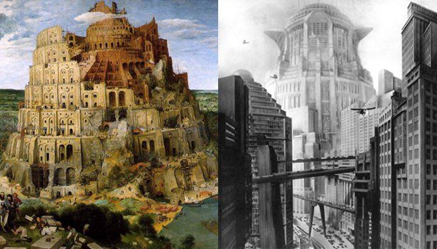 «Metrópolis» de Fritz Lang, es una de las películas mudas más importantes en la historia del séptimo arte.“La torre de Babel” del pintor Pieter Bruegel, fue la inspiración en una de las escenas donde se ve la ciudad en su totalidad.