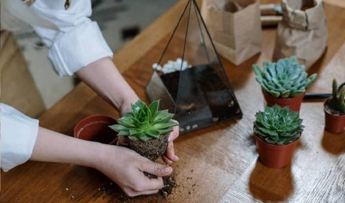 Si sos principiante en el cuidado de las plantas, una opción viable es hacer un terrario de cactus y suculentas, porque se trata de plantas que exigen poco mantenimiento y son bastante resistentes. En este caso, regalas muy poco (solo humedecer la tierra una o dos veces al mes) y procurales luminosidad alta o algo de luz directa. En todos los casos, evitá encharcar y que se expongan a la lluvia.
