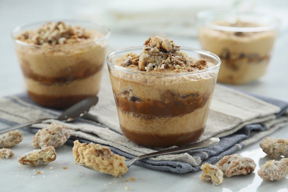 La preparación de esta mousse de dulce de leche no te tomará más de 20 minutos. Igualmente, te recomendamos prepararla con bastante anticipación. La particularidad de la mousse de dulce de leche es que debe servirse bien fría, para que su textura esté firme. Por lo tanto, debes calcular prepararla con tiempo suficiente para dejarla al menos dos horas enfriándose. Pero realmente es una receta muy sencilla. Solo lleva cuatro ingredientes y son solo tres pasos de preparación. Te recomendamos que para la decoración piques unas nueces. El amargo de la nuez espolvoreada por sobre la mousse le dará un toque fantástico. También, puedes decorar con ralladura de chocolate amargo. Agrega tu toque personal a esta receta y disfruta de su preparación.