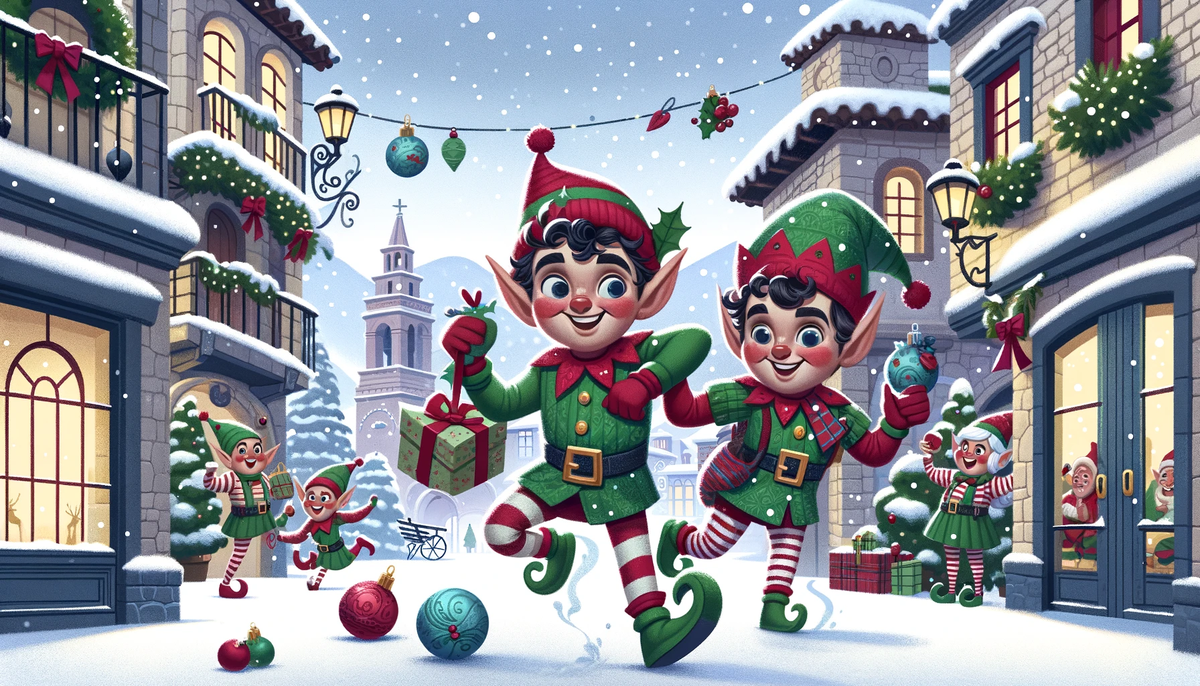 Justo a medianoche, un grupo de duendes juguetones apareció en las calles nevadas de Villa Nevada. Venían de un reino mágico, escondido entre las nubes, donde trabajaban con Papá Noel. Su misión era asegurarse de que cada detalle estuviera perfecto para la gran noche.