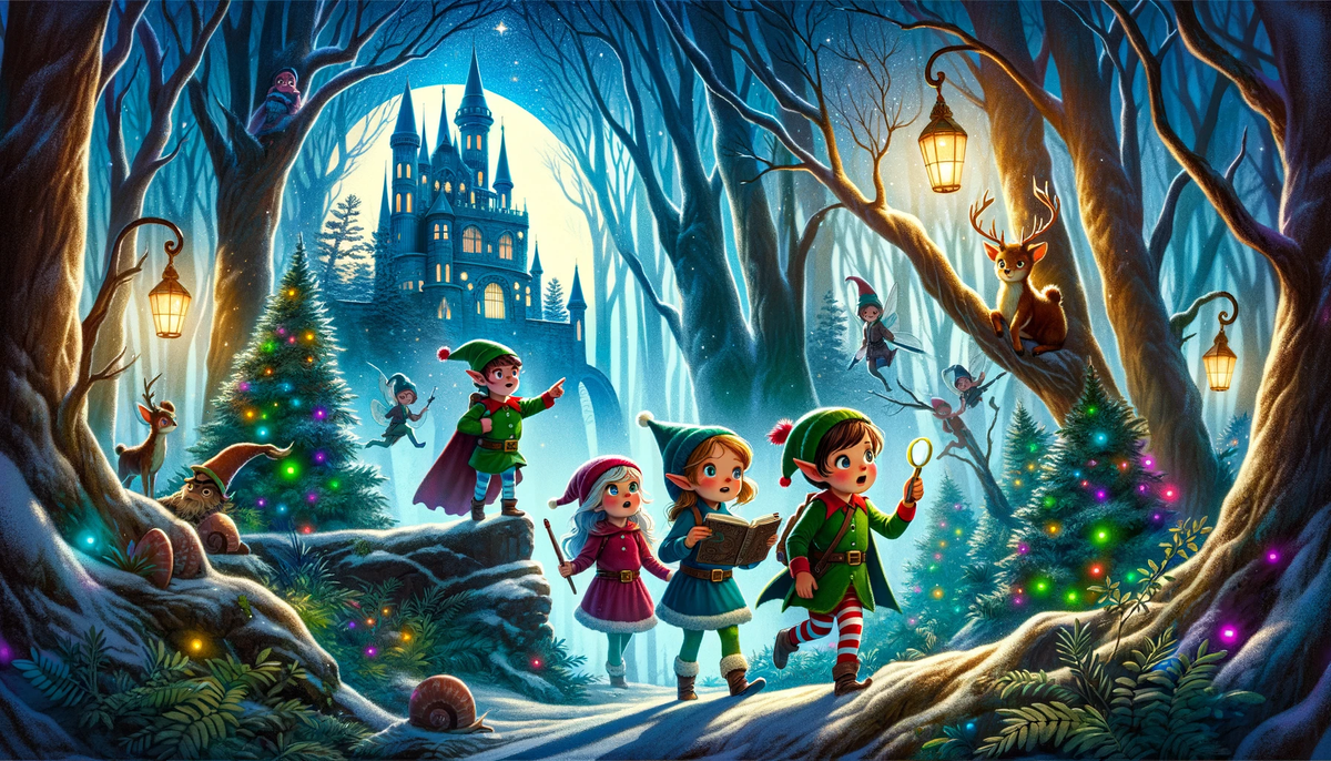 Los duendes, junto con algunos valientes niños del pueblo que se habían aventurado fuera de sus hogares, emprendieron una búsqueda en el Bosque Encantado. Este lugar, lleno de luces misteriosas y sombras danzantes, escondía secretos que solo la noche de Navidad podía revelar.
