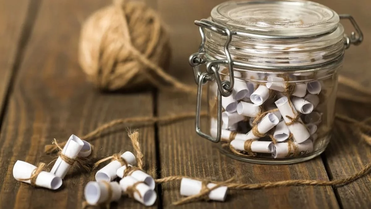 Otra idea muy original y que no requiere un gran gasto es un frasquito con mensajes. La idea es que tu amigo acuda a ese frasco cada vez que necesite un consejo o una señal, como si fuese una galleta de la fortuna. Podés incluir frases personales tuyas, como consejos que le darías, o frases de canciones, películas o libros.