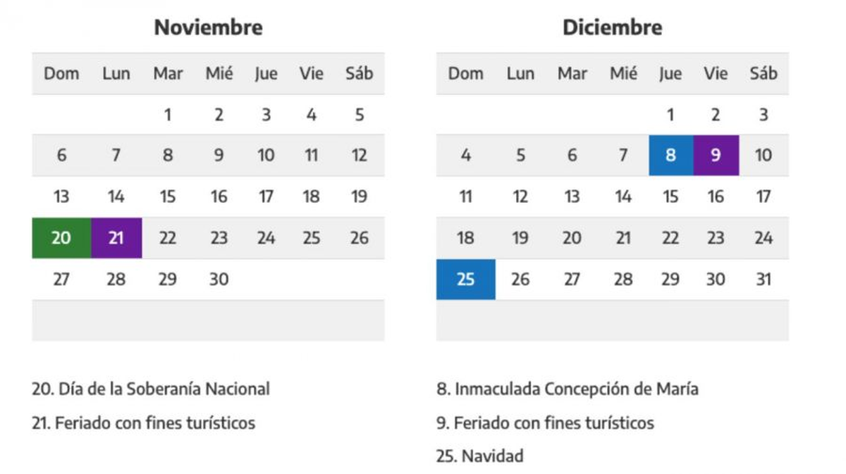 - Viernes 9 de diciembre: Feriado Puente Turístico