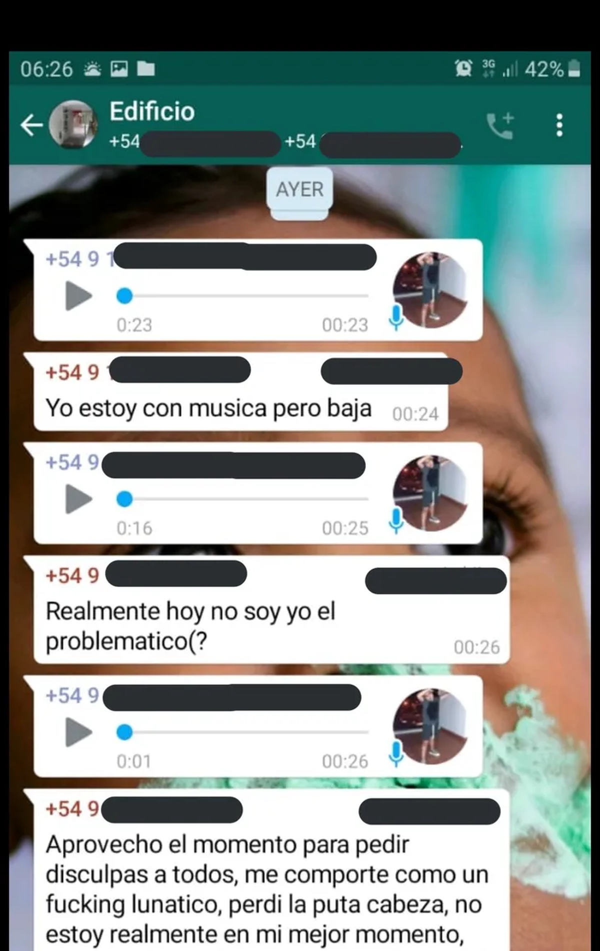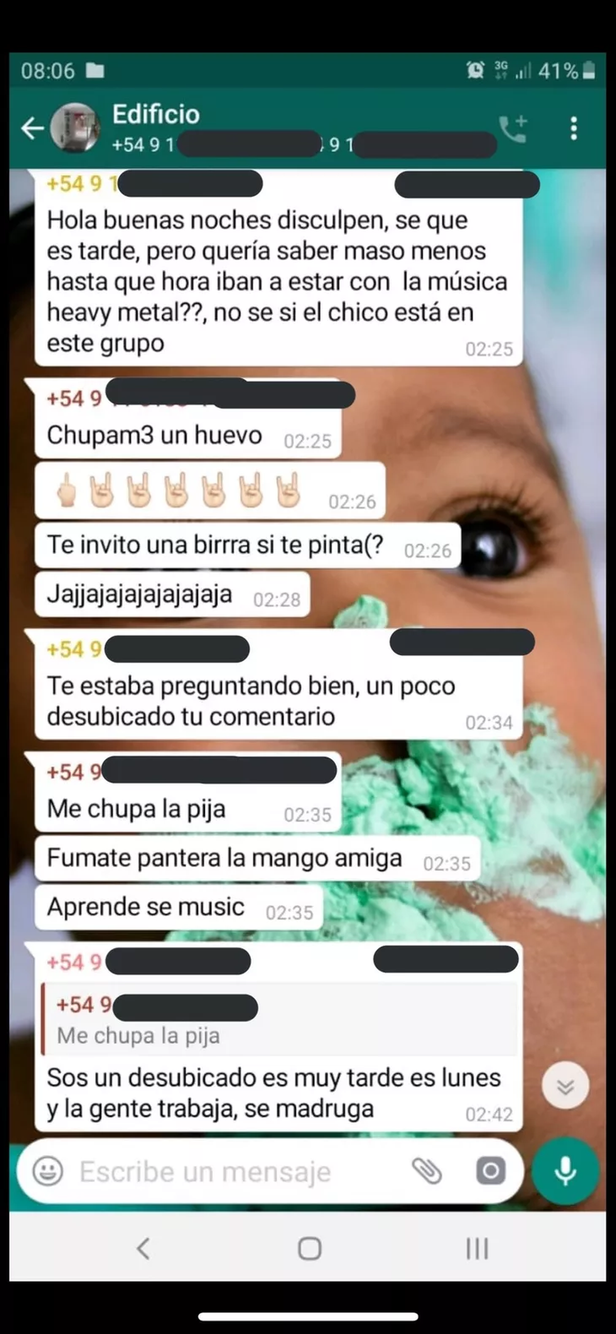 Una pelea por la música fuerte de un vecino generó todo un escándalo en el grupo de WhatsApp de un edificio, y los chats no tardaron en llegar a Twitter donde se volvieron viral. Todo empezó por la queja de que un vecino tenía música "heavy metal" pasadas las dos de la mañana. El joven se hizo cargo, pero lejos de disculparse, redobló la apuesta y comenzó a pelearse con todos.