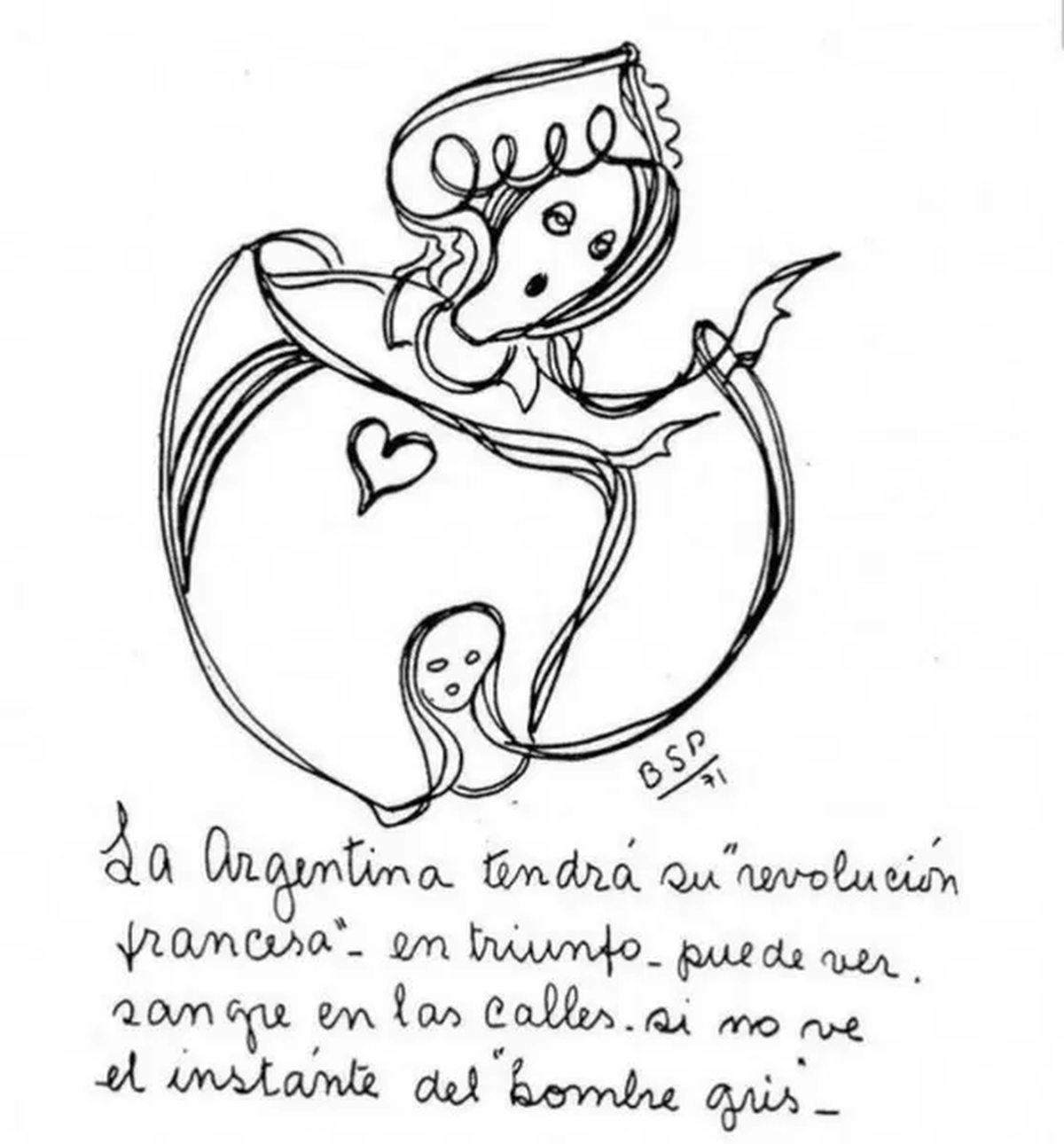 En 1941, Parravicini publicó un dibujo en que se observa la leyenda: "La Argentina tendrá su Revolución Francesa, en triunfo, puede ver sangre en las calles si no ve el instante del hombre gris".