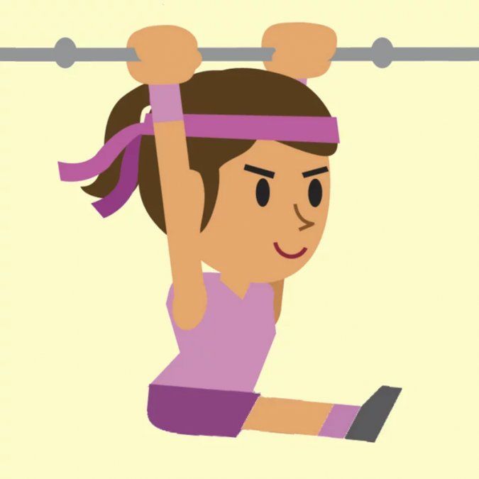 - Tómate de la barra fija y coloca las manos alineándolas al ancho de los hombros. Eleva tus piernas unidas, de modo que floten en el aire.