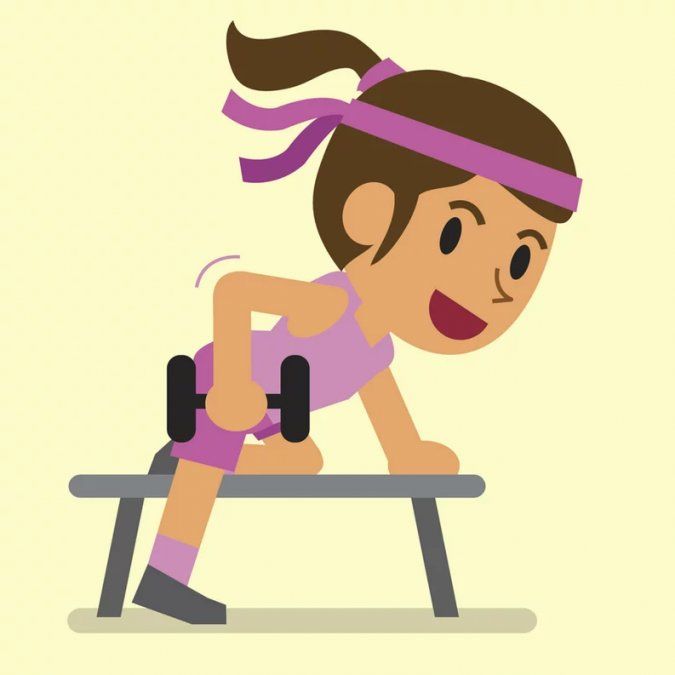 - Realiza movimientos con la mancuerna, con el codo doblado en 90 º, paralelo al suelo. Mueve la mancuerna, con el brazo extendido, hacia atrás y hacia adelante hasta que el codo se extienda del todo y vuelva a la flexión inicial.