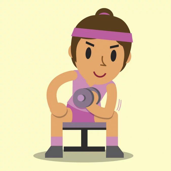 - Haz el ejercicio clásico de mancuerna con dirección hacia tu hombro, flexionando el codo.