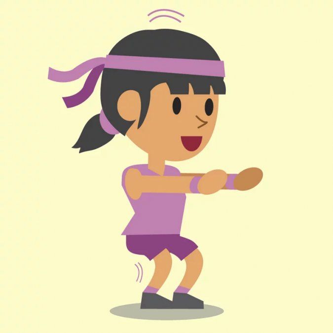- Haz una sentadilla flexionando las rodillas 90 º. Para aumentar la eficacia del ejercicio, espera 2 o 3 segundos antes de volver a la posición inicial.